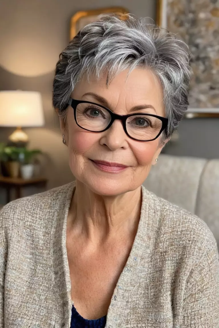 You look sophisticated and confident, celebrating your gorgeous silver tones with grace.