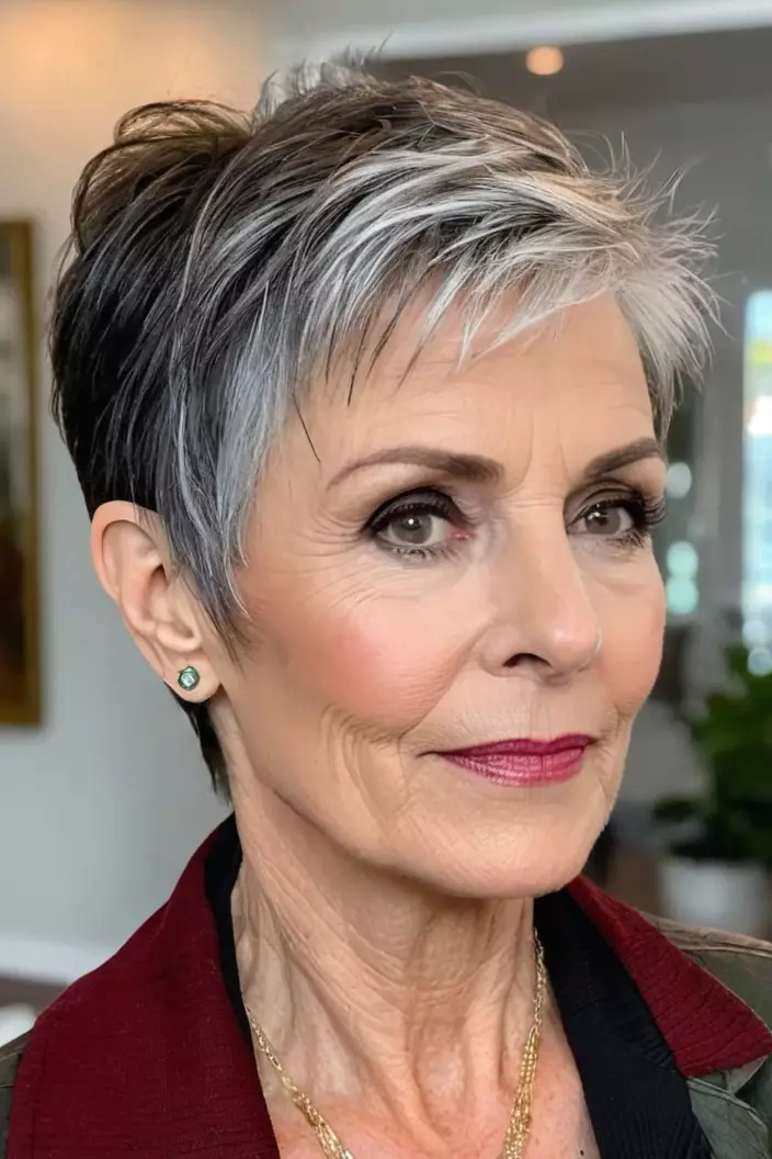 A gray pixie with side-swept bangs is sophisticated and chic.