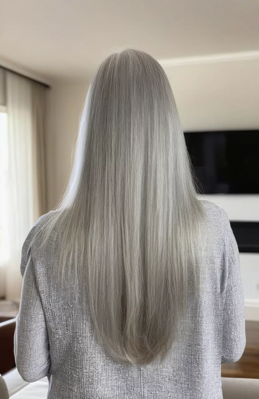 You can rock long, straight silver hair with grace and elegance.
