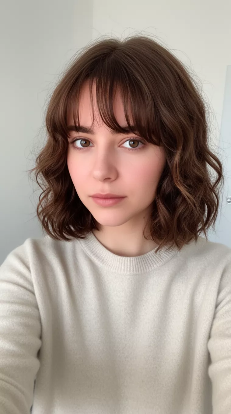 Wavy Choppy Bob With Full Wispy Bangs