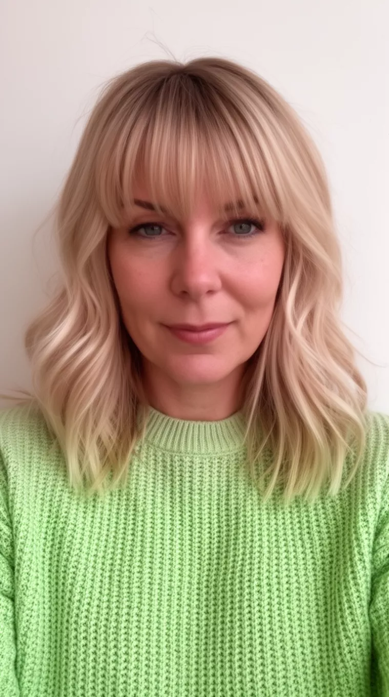Soft Blonde Waves With Wispy Straight Fringe