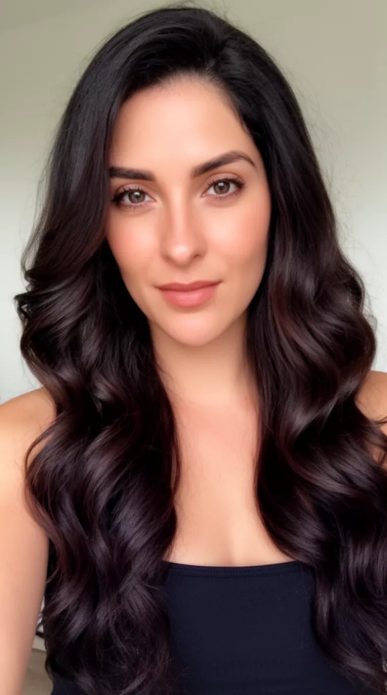 Long, loose waves emphasize the mirror-like shine of this dark pigment.