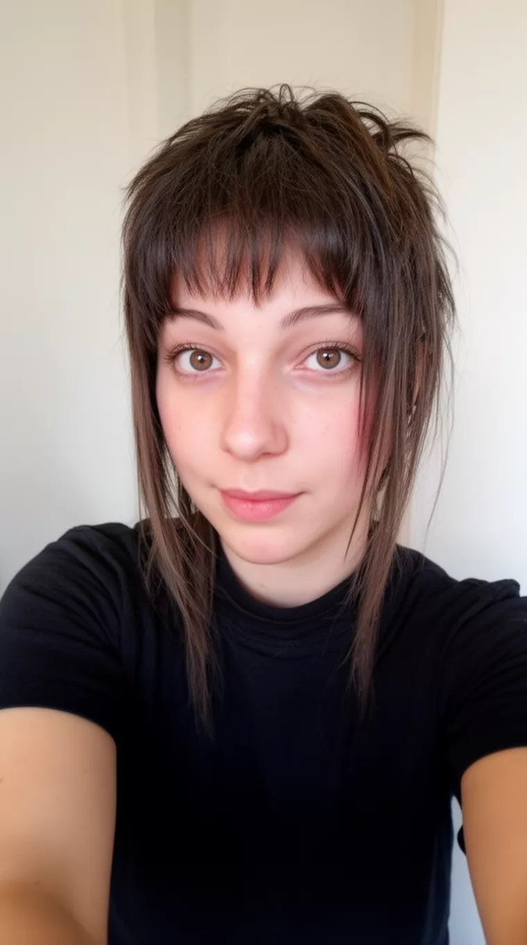 Unleash your inner rockstar with an untamed short shag featuring wild, irregular layers.